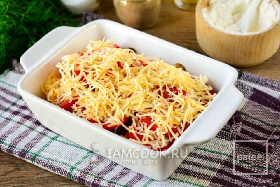 Присыпьте всё слоем натертого сыра.