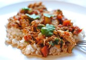 Куриное филе (грудки и окорочка), приготовленные в медленноварке с чесноком, луком, помидорами, имбирем, кориандром, кайенским перцем и индийскими специями гарам масала.