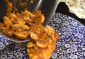 Жареная куриная грудка с соусом из грибов с луком, чесноком и тимьяном, тушеных в белом вине и курином бульоне.