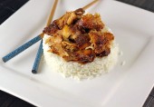 Куриное филе, обжаренное в масле с луком и чесноком и тушеное в соевом соусе с консервированными мандаринами.