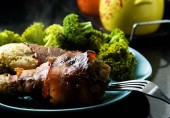 Куриная голень, запеченная с беконом и горчицей со специями - прекрасное блюдо, которое подойдет к любому гарниру.