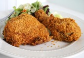 Курица в маринаде из соуса Ранч, в нежной панировке из измельченных маффинов и тертого пармезана понравится вашей семье.