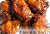 ПродуктыКуриные крылья - 1 кгСоевый соус - 2 ст. ложкиКетчуп - 2 ст. ложкиМёд - 2 ст. ложкиСпеции для курицы - 1 ч.