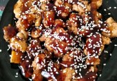 Суть блюда во вкусе умами, который ощущается при совмещении оттенков всех составляющих: солёный рис, кисло-сладкий соус и нейтральная индейка с щепоткой базилика.