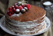 Шоколадный торт с кислинкой клюквы и творожно-сливочным кремом