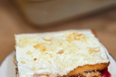 Тортик с кокосовыми коржами, вишневой прослойкой и с чизкейком внутриРецепт со странички @cook_tookДиаметр форм 18см.