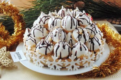 Можно оставить в виде тортика или нарезать порционными пирожными.