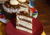 Летний десерт изумительный, и совсем не сложный в приготовлении. Торт покрывается взбитыми сливками (отлично сочетаются со вкусом безе) и украшается фруктами или ягодами.