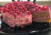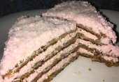 Пряный, ароматный торт с морковным бисквитом с грецкими орехами, слоем чизкейка Нью-Йорк и малиновым конфи) делала в форме 22см, крайне неудобно оказалось, в следующий раз уменьшу количество ингредиентов и сдедаю в 16-18см.