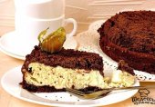 Очень интересный десерт, получилась кремовая творожная начинка спрятана под шоколадными песочными крошками.