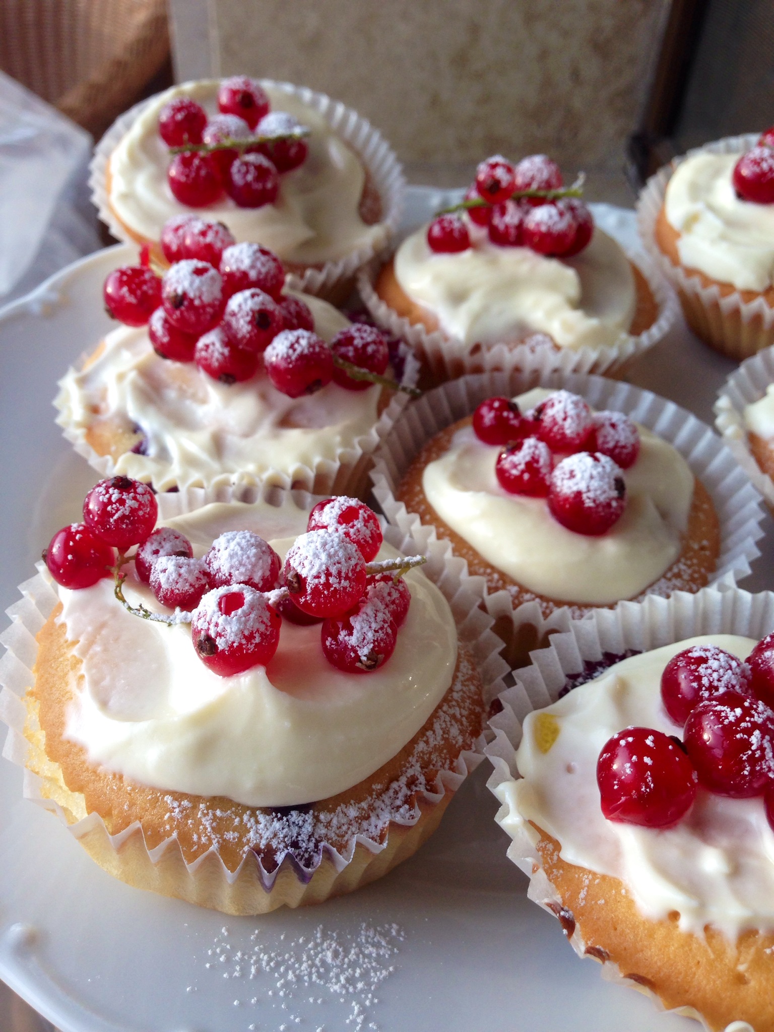 Выпекать в разогретой духовке (175С) около 17 минут, проверить готовность зубочисткой. Достать кексы из духовки и полностью остудить.