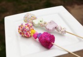 Конфеты на палочке - зефир в белом шоколаде, украшенный кондитерскими посыпками.