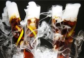 Коктейль из золотого рома и "Колы" с добавлением лимонного сока и цедры, эффектно поданный с сухим льдом.