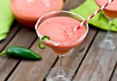Коктейль Маргарита из арбузного сока с текилой, соком лайма и ликером Трипл-сек.