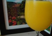 Вкусный напиток из содовой, шампанского и концентрированного сока красного апельсина.