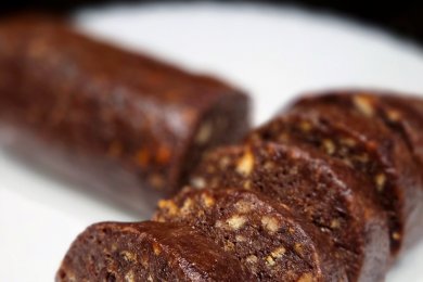 Не знаю, есть ли ещё такие люди, но в детстве мы не пробовали шоколадную колбаску, зато очень любили пирожное картошка и дегустировали её везде, где только видели (да я и сейчас так делаю, но вкус обычно не радует).
