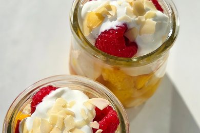 Мёд, груша, апельсин, нектарин, любимые ягоды, миндальные лепестки и греческий йогурт ❤️