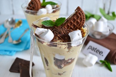 Невероятно вкусный, легкий десерт из песочного печенья, воздушного зефира маршмэллоу и нежного карамельного крема.