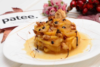 Соблюдение правил здорового питания- ещё не повод остаться без десерта! Предлагаю вам отличный вариант очень полезного сладкого блюда- это “башенки” из яблок и хурмы, запечённые с мёдом и орехами!