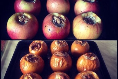 Яблоки с халвой и орехами