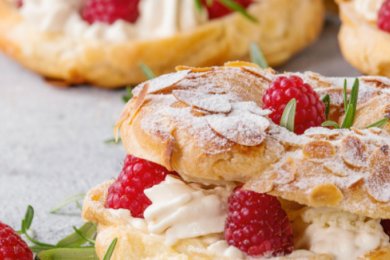 При выпечке заварное тесто поднимается, и внутри его образуется полость. Поэтому это тесто используется для выпечки кондитерских изделий, заполняемых кремом, сливками или другой начинкой.