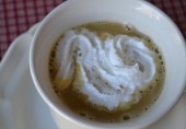 Вкусный кофейный напиток с молоком, белым шоколадом и взбитыми сливками.