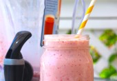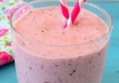 Легкий освежающий напиток из клубники с бананами и обезжиренным молоком.