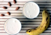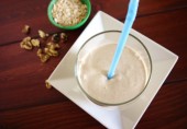 Легкий освежающий напиток из измельченных овсяных хлопьев с бананами, миндальным маслом и молоком.