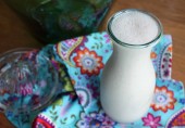 Освежающий напиток из миндального и кокосового молока с какао, замороженным бананом, финиками и кокосовой стружкой.