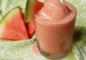 Освежающий напиток из замороженных спелых фруктов - арбуза, банана и клубники.