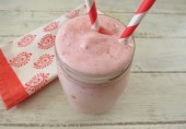 Освежающий напиток из замороженной клубники с молоком и клубничным джемом.