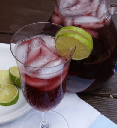 Сладкий чай с сиропом из свежей черники и сока лайма.