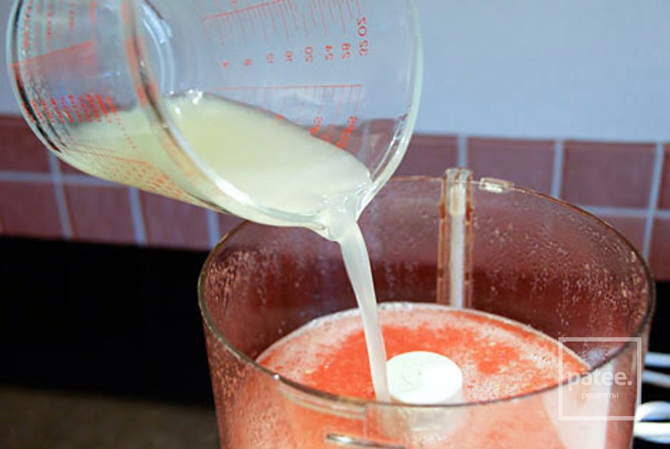 Положить кубики арбуза в мерный кувшин. Должно получиться 2кг.