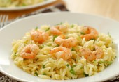 Легкое, простое и вкусное блюдо, которое будет готово меньше, чем за полчаса - паста орзо в лимонном соусе с жареными креветками.