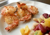 Креветки в панировке из сухарей с кокосовой стружкой, запеченные в духовке.