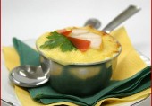 Жюльен из красной рыбы (например, форели), обжаренной с луком, залитой сливками, посыпанной тертым сыром и запеченной в духовке.