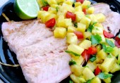 Эта красочная и фруктовая сальса превосходным образом подчеркивает нежную и вкусную рыбку. Блюдо очень быстрое и простое в приготовлении.