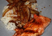 Запеченный лосось под маринадом из бальзамического и яблочного уксусов, меда и специй.