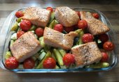 Филе лосося с овощами в духовке