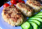 Котлеты с рисом и рыбными консервами.