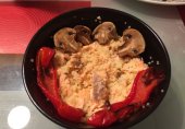ИНГРЕДИЕНТЫ:2 стейка лосося1/2 ч. л. тимьяна1/2 лимона1/2 луковицы2 ст. л. оливкового масла1 болгарский перец80 г тертого сыра1 ч.
