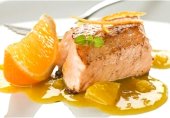 Апельсин и лосось вместе -потрясное сочетание.Соус из апельсина с добавлением тимьяна и розмарина подчеркивают нежный вкус лосося.