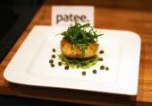 Пирожные из лосося на лаймовой подушке с каперсами.