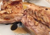Филе тунца, маринованное в соевом соусе с медом и васаби, обсыпанное семенами кунжута и приготовленное на гриле.