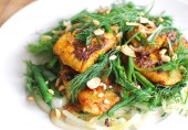 Белая рыба, маринованная в рыбном соусе с чесноком, луком, имбирем и укропом и обжаренная в масле. Подавайте рыбу с вашей любимой пастой и рыбным соусом, посыпав укропом и жареным арахисом.