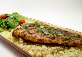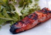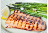 Филе лосося, маринованное в соевом соусе с кленовым сиропом, апельсиновым соком и специями и приготовленное на гриле.