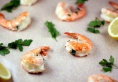 Креветки, маринованные в лимонном соке с чесноком и зеленью, начиненные тертой моцареллой и обжаренные на гриле.
