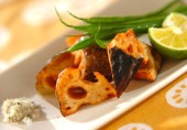 Корень лотоса обжаривается во фритюре с кожей и подается с солью и специями.