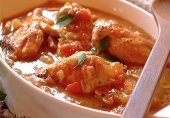 Чахохбили из курицыЧахохбили (грузинское рагу) можно готовить на всю семью, так как сытное блюдо ничем не отличается от привычной недиетической пищи.