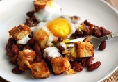 Фасоль с яичницей и сухариками